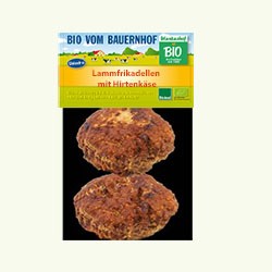 Lammfl.**(69%), EIER*, Zwiebeln*, Maismehl*, Hirtenkäse** (past.KUHMILCH, mikrob. Lab*, Meersalz), Meersalz, Gewürze*: (Majoran, Pfeffer, Kümmel, Muskat, Knoblauch), Zwiebeln, Petersilie* Glutenfrei *k.b.A., ** Bioland