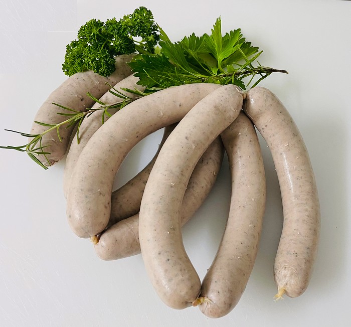 Diese besondere Bratwurst gibt es nur gelegentlich, wenn Damwild-Fleisch zur Verfügung steht.